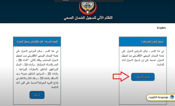 - الذهاب إلى النظام الآلي لتسجيل الضمان الصحي “من هنا“.